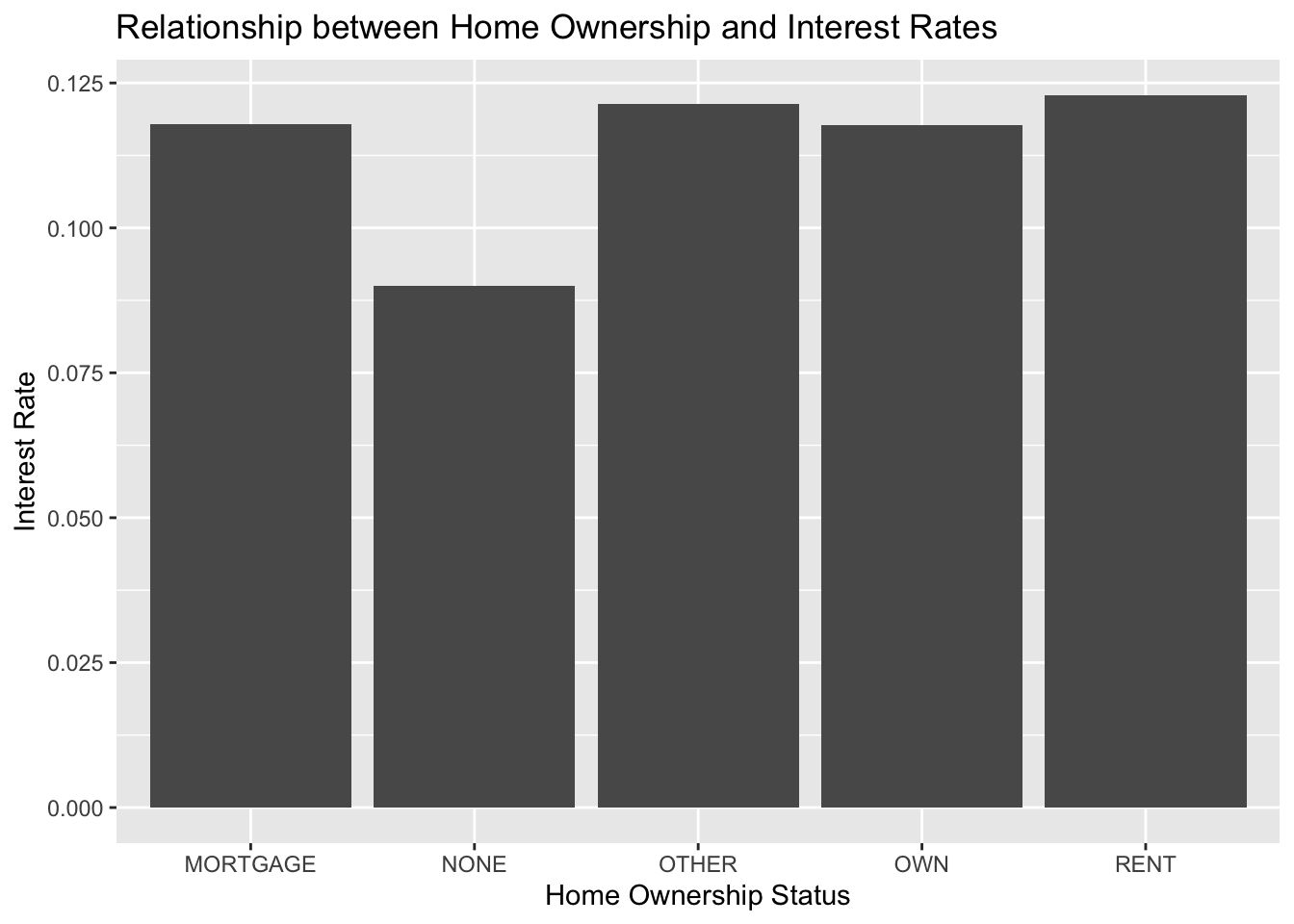 labs (title = "Relationship between Home Ownership and Interest Rates", x="Home Ownership Status", y="Interest Rate")