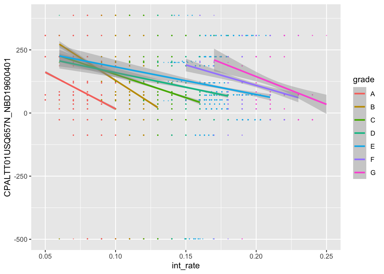 ggplot(aes(x=int_rate, y=CPALTT01USQ657N_NBD19600401, color=grade))+