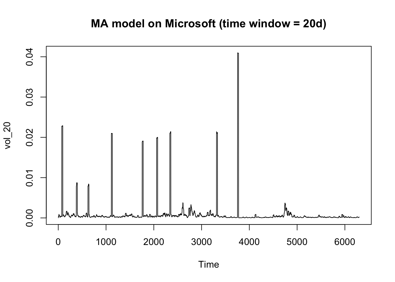 ts.plot(vol_20, main = "MA model on Microsoft (time window = 20d)")