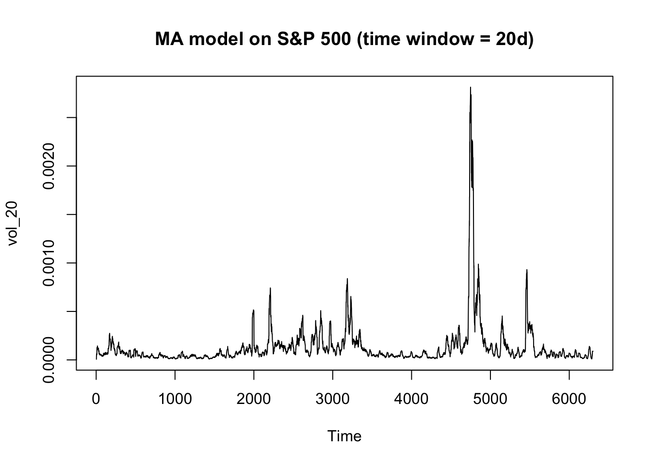 ts.plot(vol_20, main = "MA model on S&P 500 (time window = 20d)")