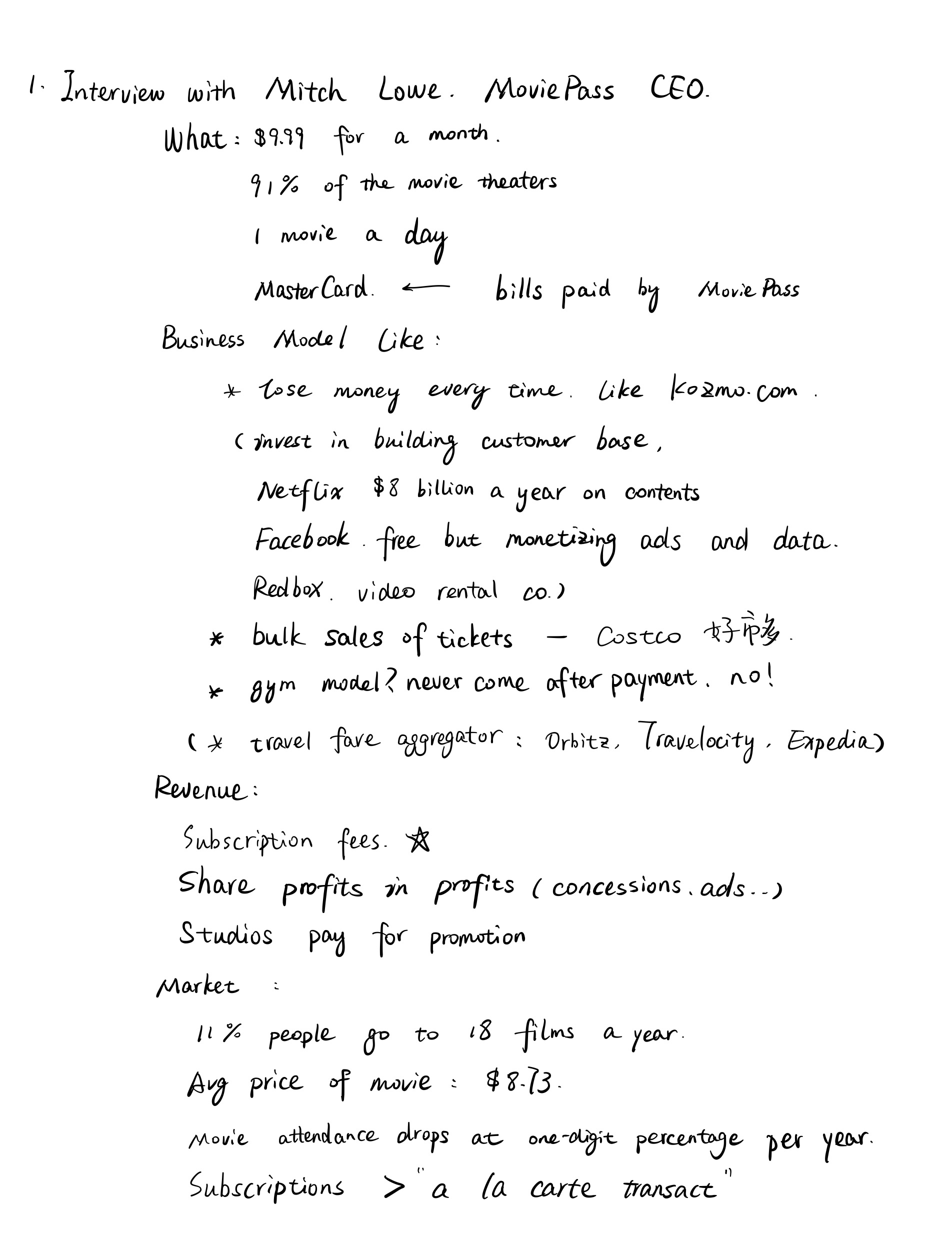 1. Interview with Mitch Lowe, CEO of MoviePass